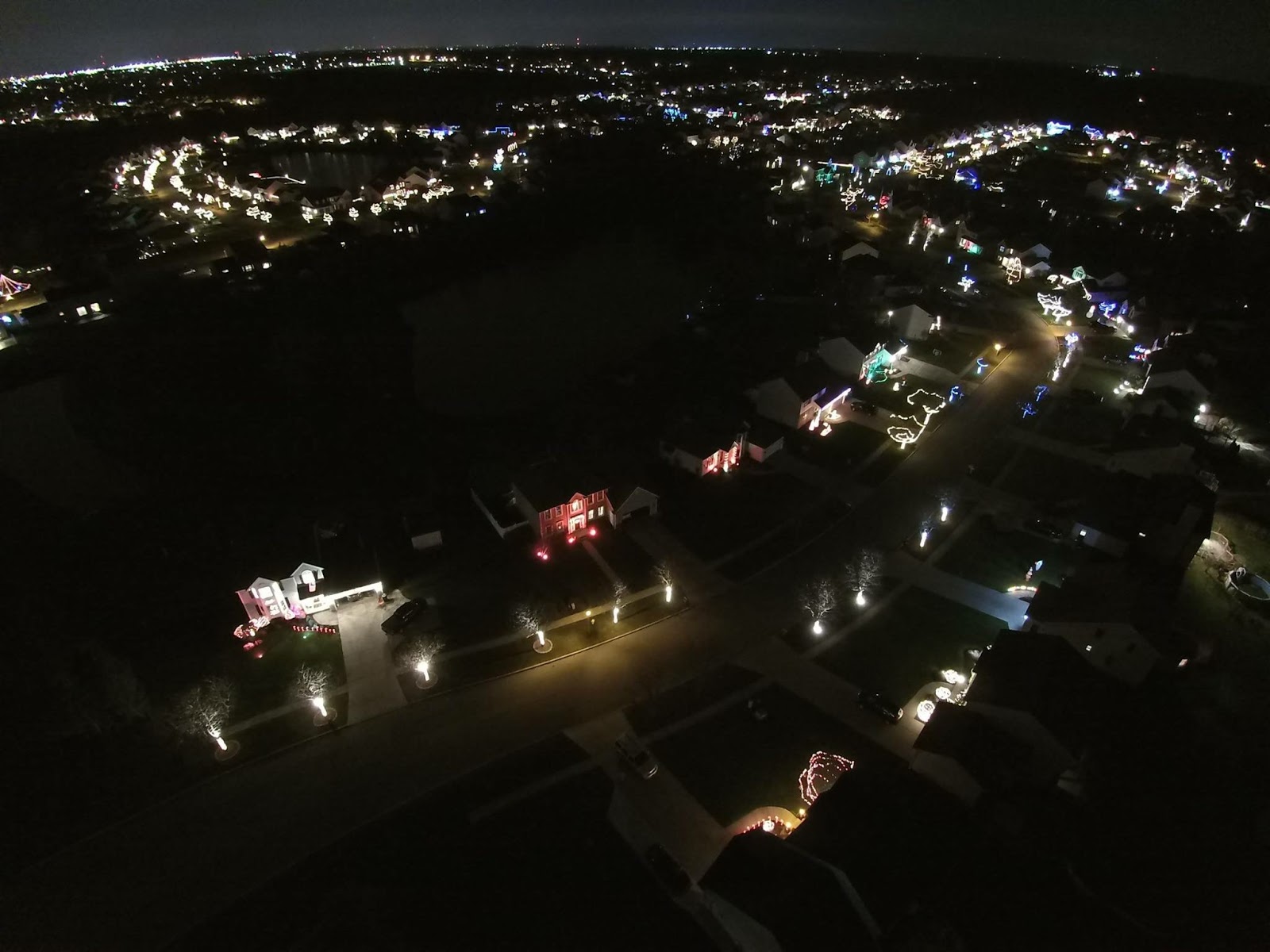 Here is the "Follow Me" Feature on my drone as my son who drove the truck (which you will see occasionally in the shot!) and I just tried to keep the drone facing the best parts as we drove through our Christmas lighted neighborhood!