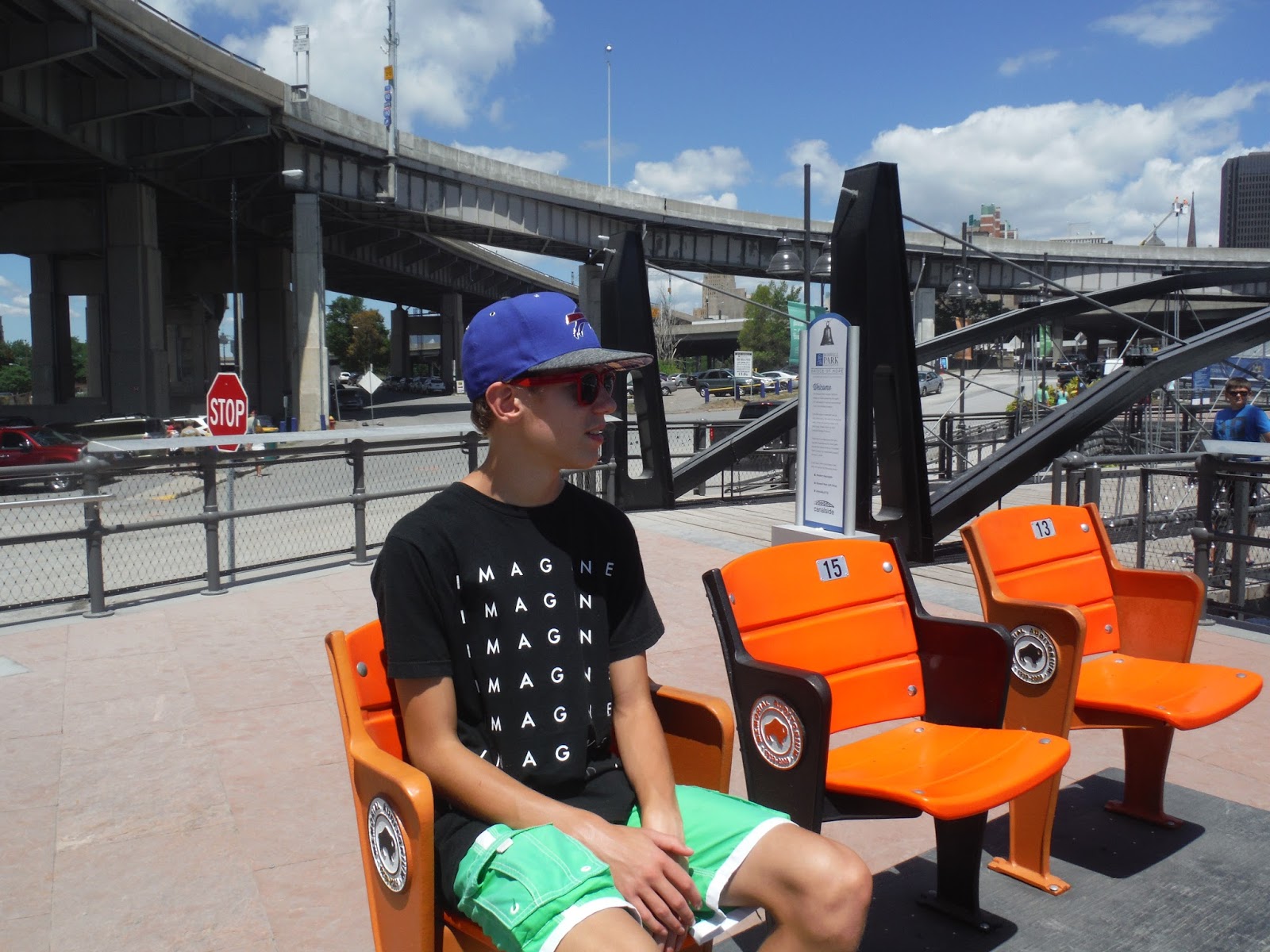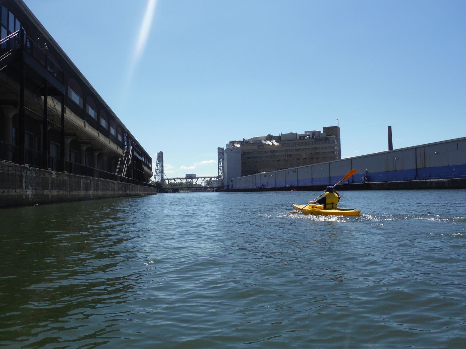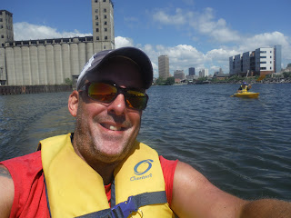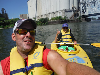This past Tuesday, Nick and I jumped in the truck and headed to Buffalo's Canalside for a quick kayak up the Buffalo River. We couldn't have picked a better day! We arrived around 11:00 am so it was around 77 degrees and was bright sun with puffy clouds! We parked a ways away as parking was packed downtown. But it was so nice out that the walk was welcomed after the 20 minute drive from home.