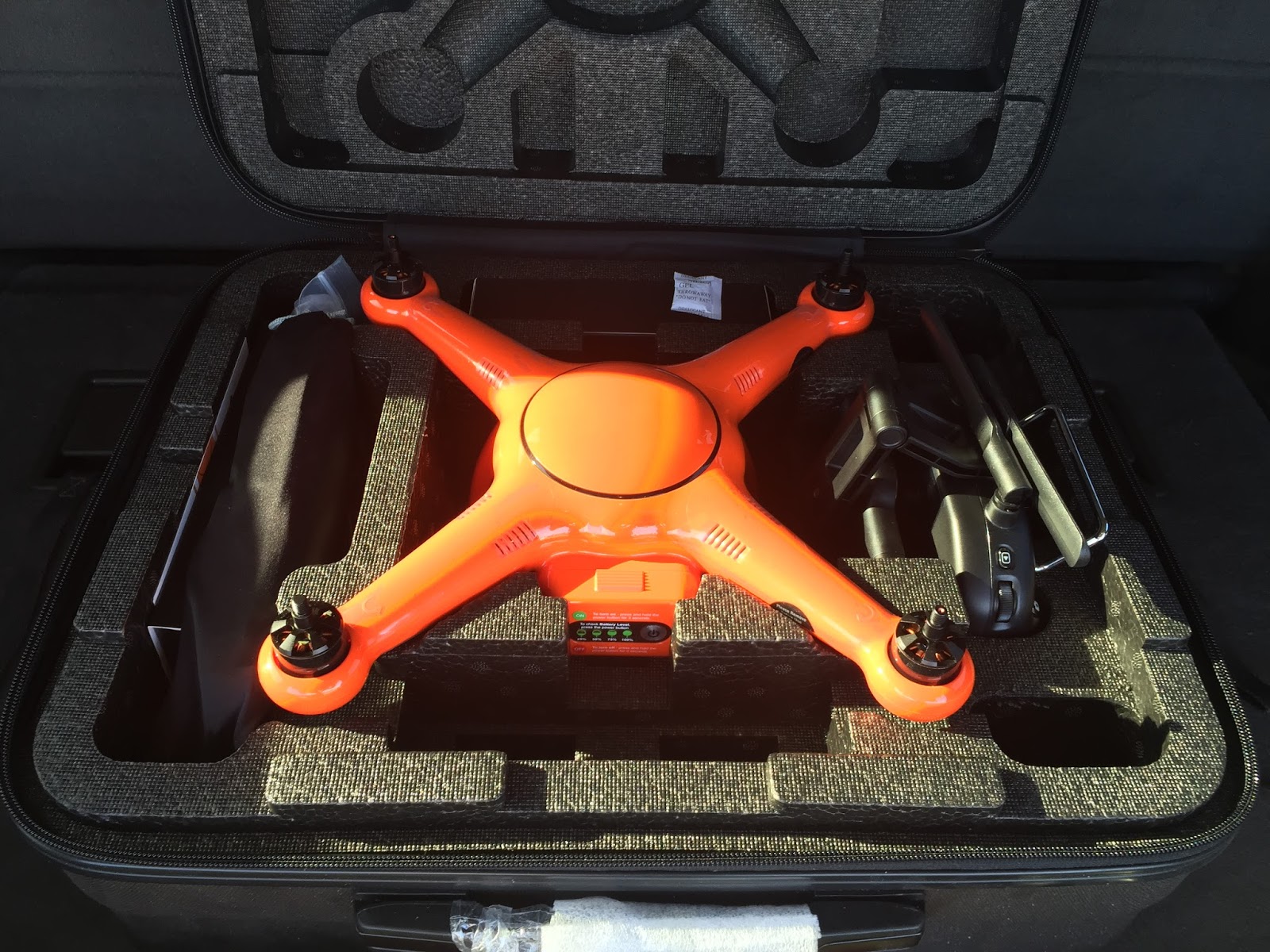 So the Drone case comes packed with the Controller, Drone,
